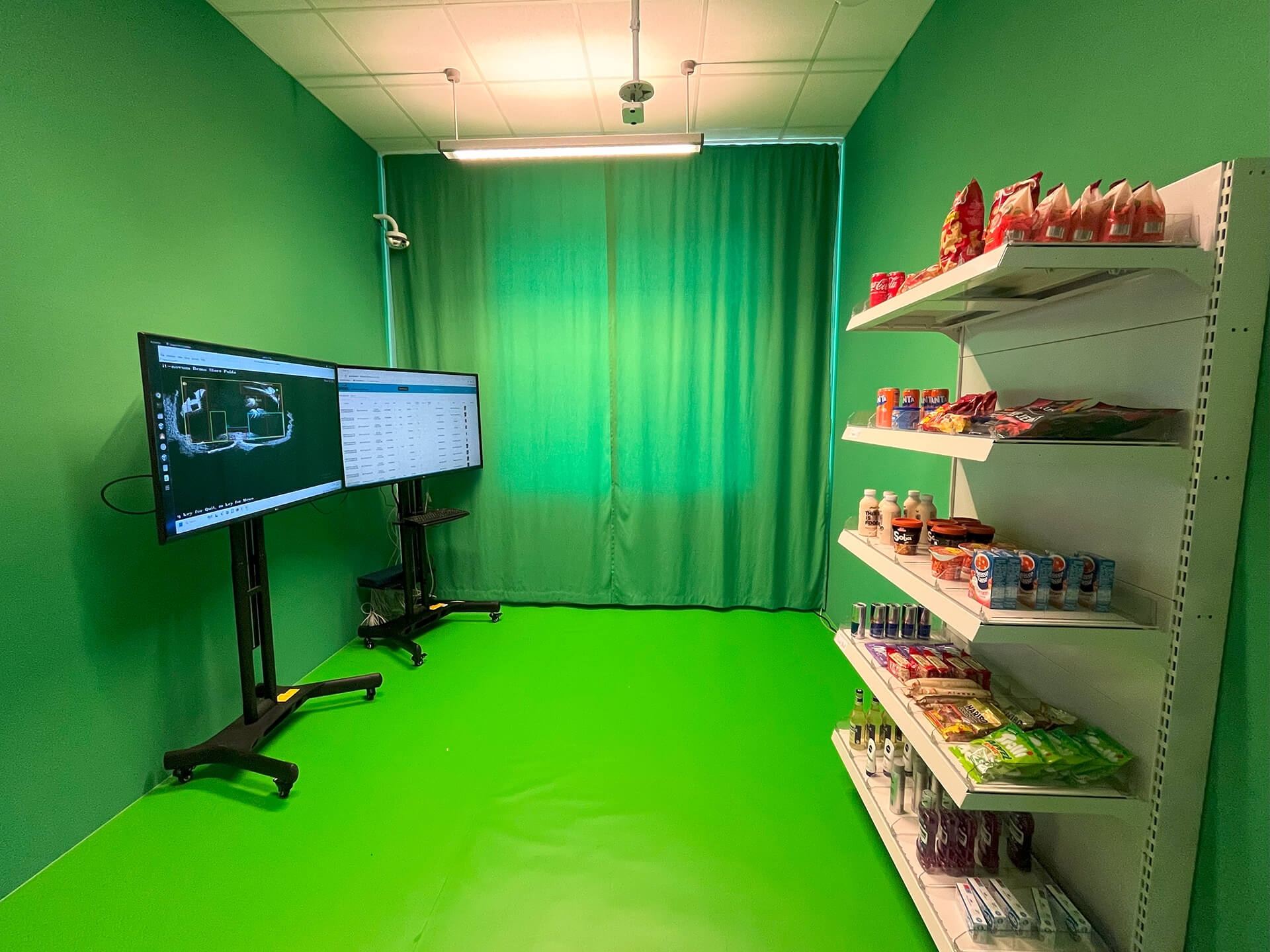 Unser IoT Innovation Lab liefert sensorbasierte Erkenntnisse für verschiedenste Einsatzszenarien, z.B. People Tracking, Smart Shopping und Security. Es ist ausgestattet mit Lidar-Sensoren, intelligentem Einkaufswagenregal mit Gewichtssensorik sowie einer 3D-Kamera zur Hand- und Personenerkennung.